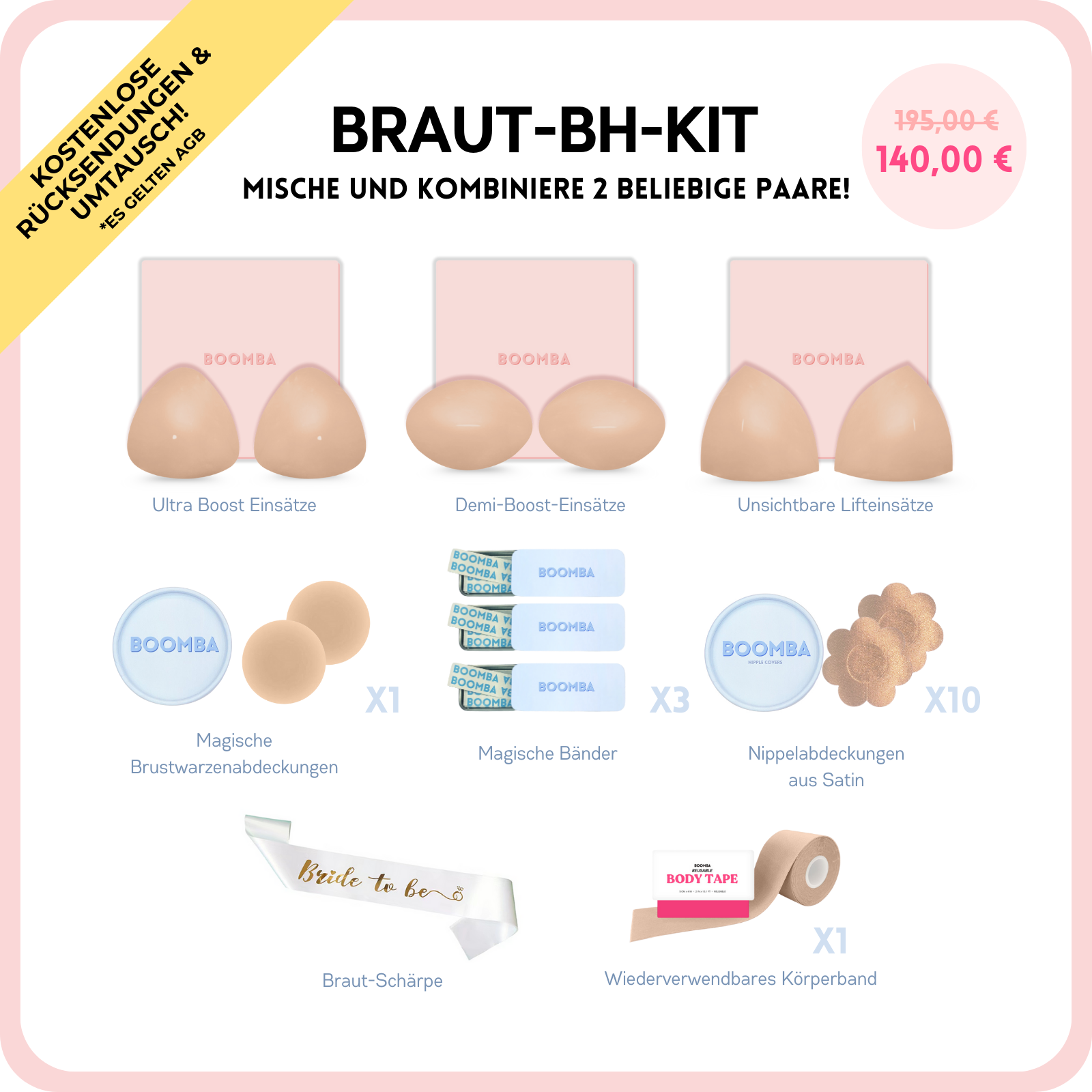 Die BOOMBA-Einsätze befreien dich von den Einschränkungen durch Riemen und Schnallen. Trage selbstbewusst tiefe Ausschnitte und Bikinis.