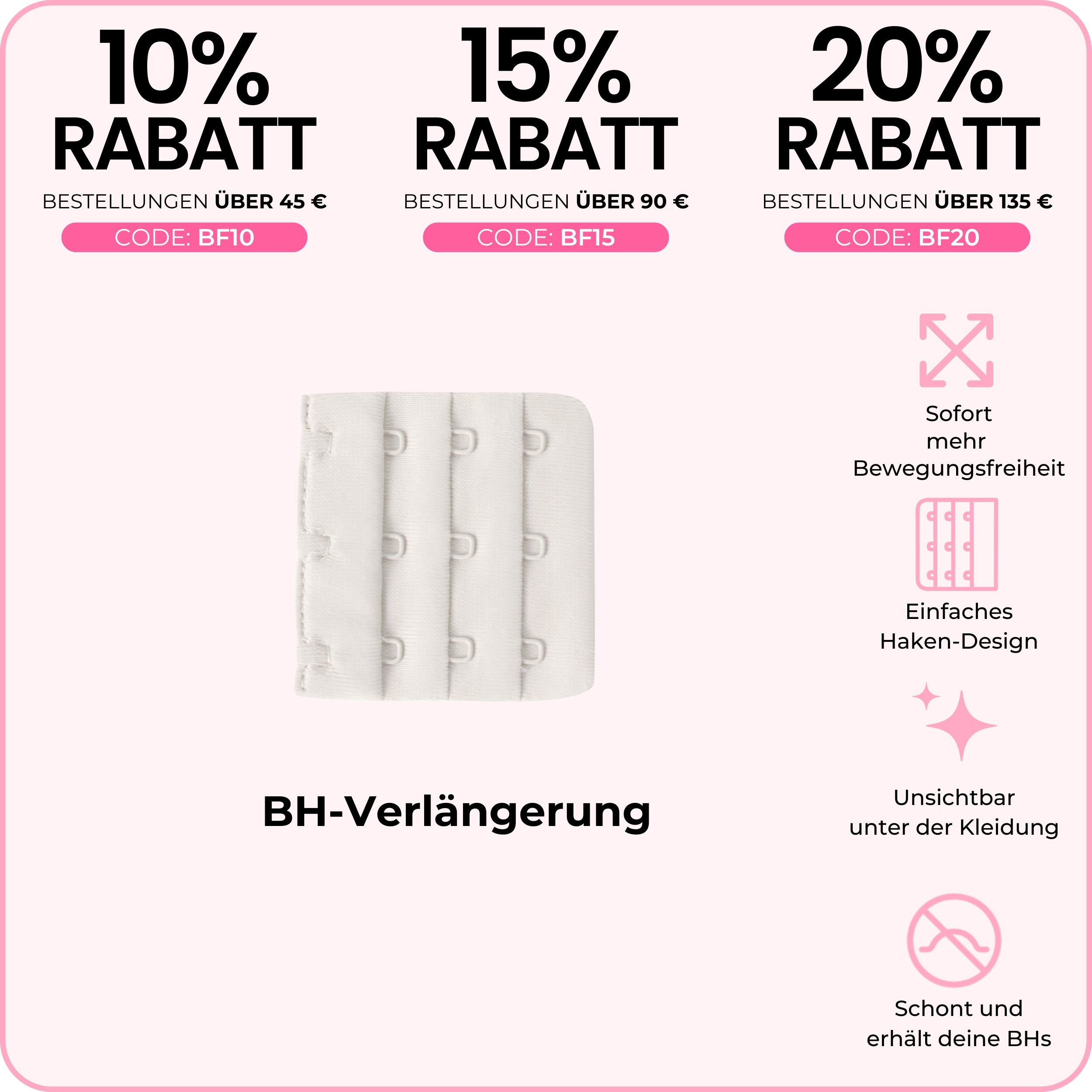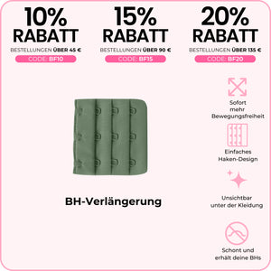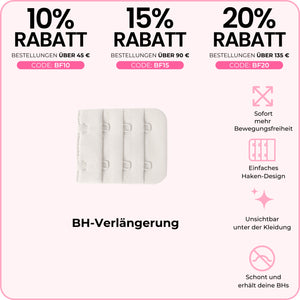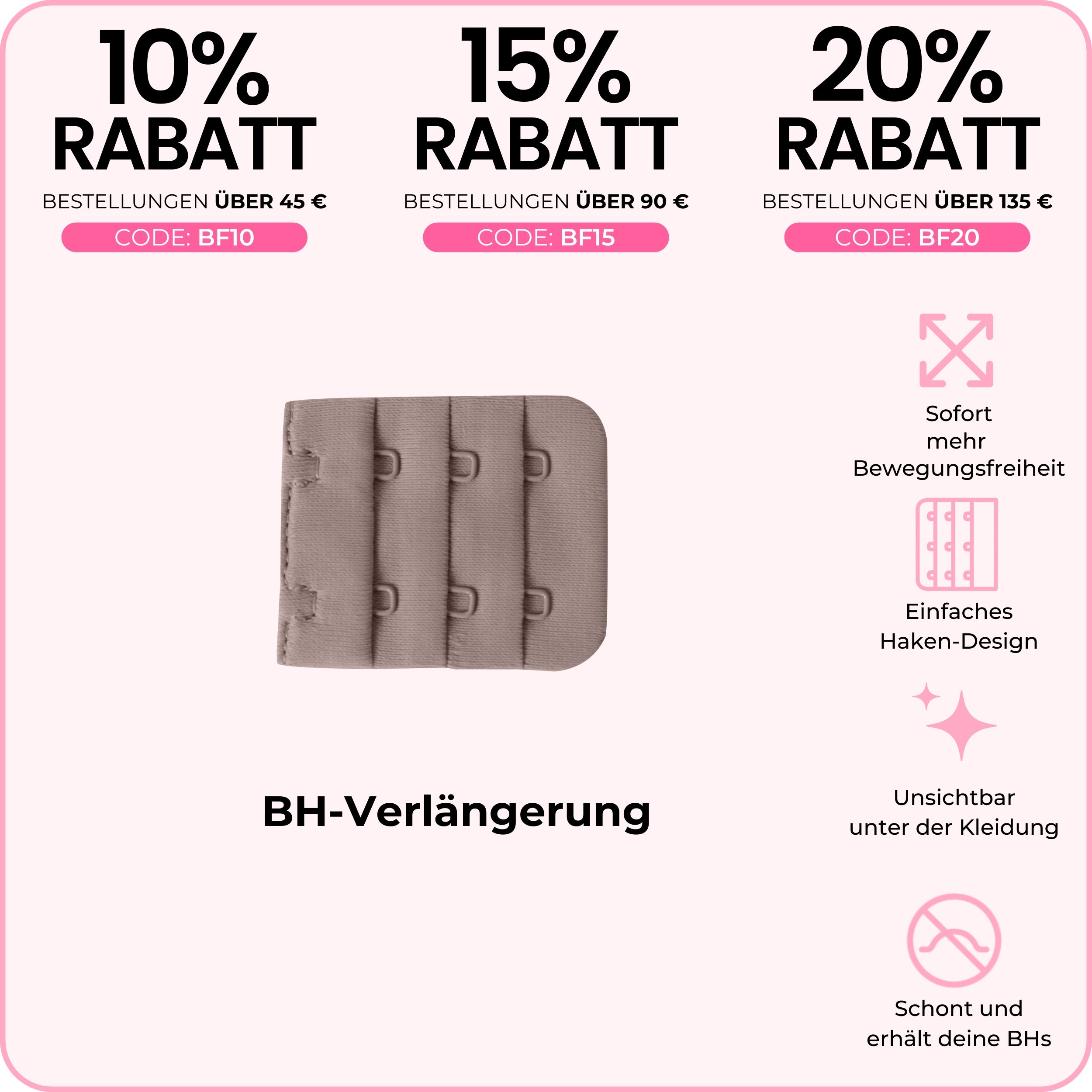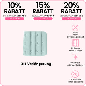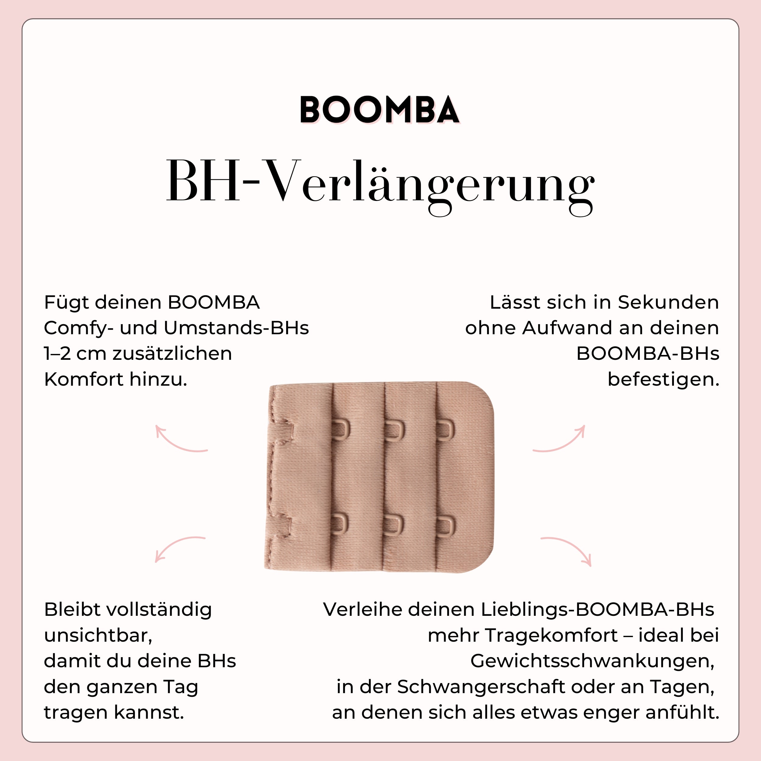 Manchmal braucht dein Lieblings-BH einfach ein bisschen mehr Freiraum. Unsere BH-Verlängerung ist die einfache Lösung, wenn sich dein liebster BOOMBA-BH etwas zu eng anfühlt – sei es durch Gewichtsschwankungen, Blähungen, Schwangerschaft oder einfach, weil du am Ende eines langen Tages mehr Komfort möchtest.