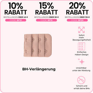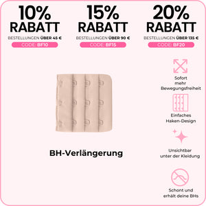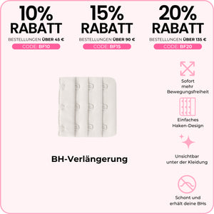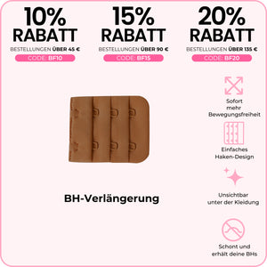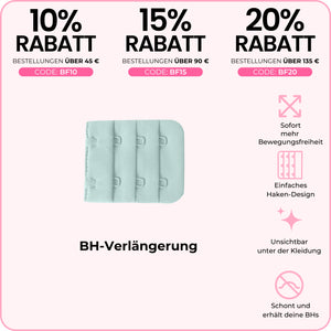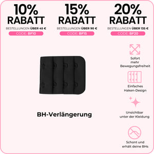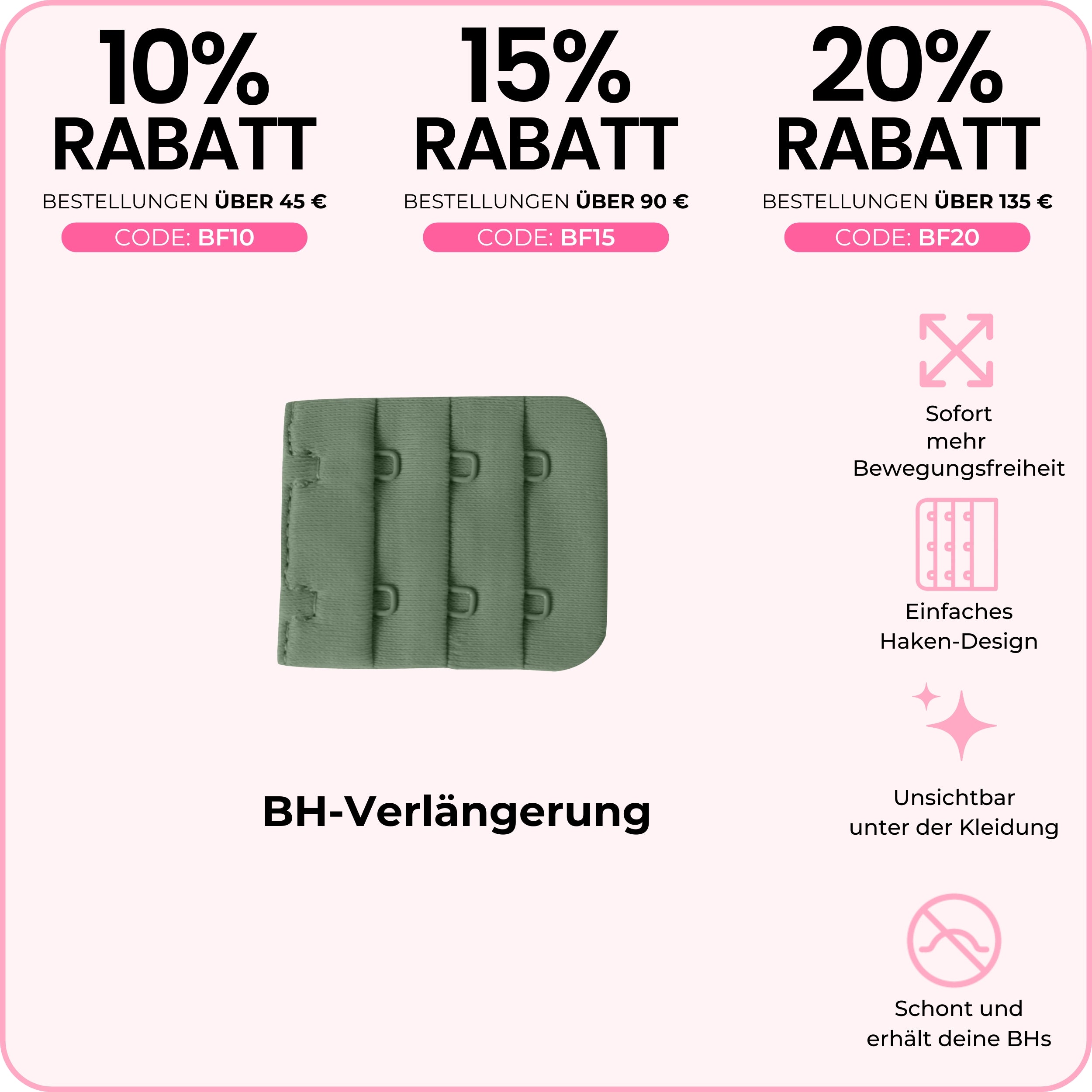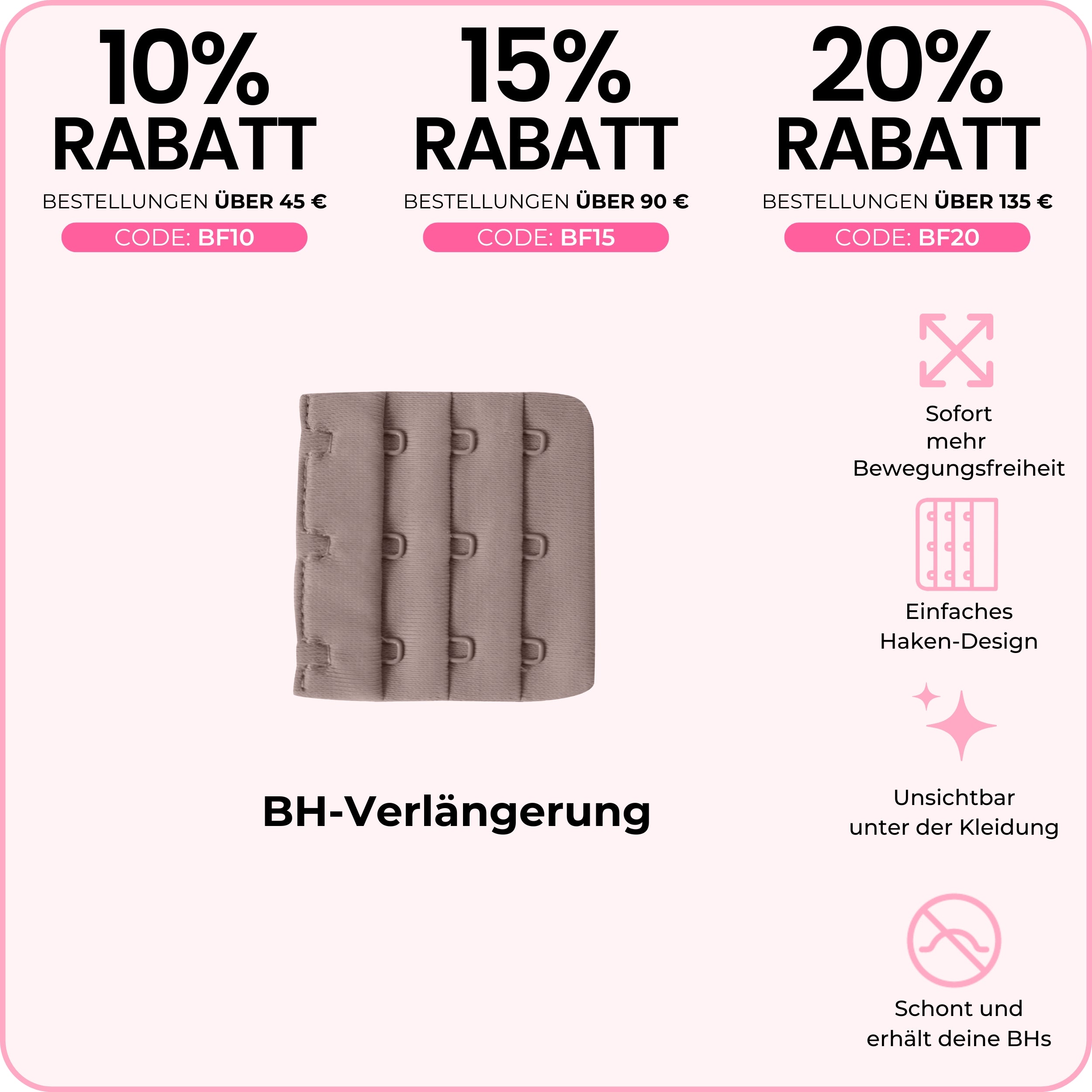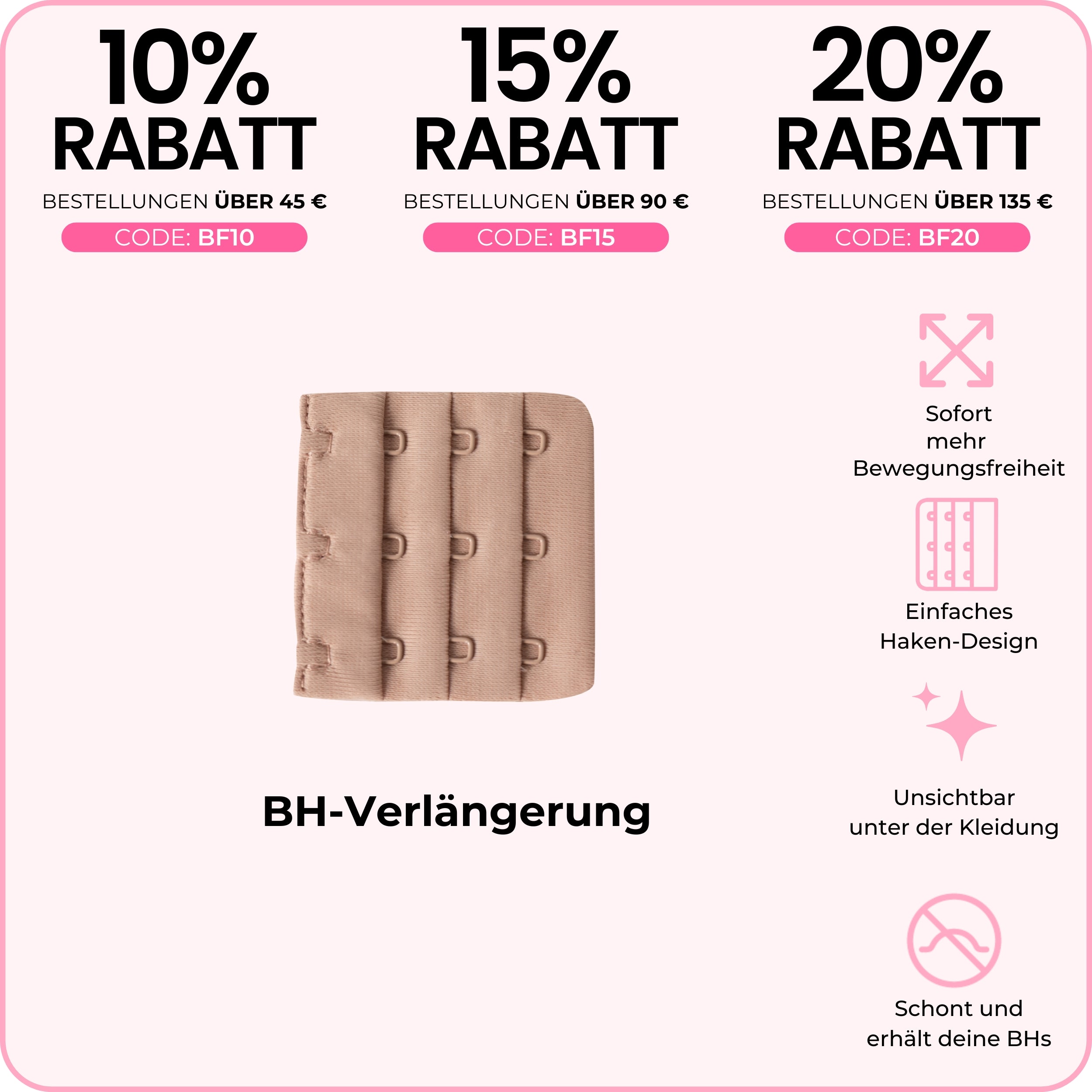 Manchmal braucht dein Lieblings-BH einfach ein bisschen mehr Freiraum. Unsere BH-Verlängerung ist die einfache Lösung, wenn sich dein liebster BOOMBA-BH etwas zu eng anfühlt – sei es durch Gewichtsschwankungen, Blähungen, Schwangerschaft oder einfach, weil du am Ende eines langen Tages mehr Komfort möchtest.