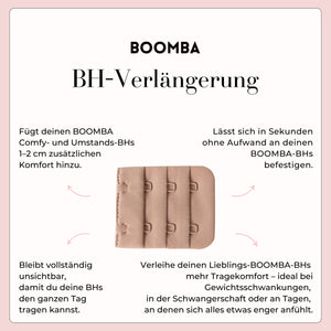 Manchmal braucht dein Lieblings-BH einfach ein wenig mehr Luft. Unsere BH-Verlängerung ist die simple Lösung, wenn sich deine BOOMBA-BHs (einschließlich unserer Comfy Bras und Maternity Bras) etwas zu eng anfühlen – sei es durch Gewichtsveränderungen, Blähungen, Schwangerschaft oder einfach, weil du am Ende eines langen Tages mehr Komfort möchtest.