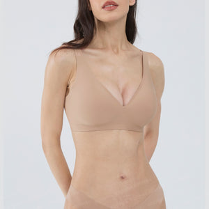 Das ist Mia – dein neuer Lieblingsbegleiter für jeden Tag. Sie ist weich, stützend und stilvoll, ohne dabei aufdringlich zu wirken. Die geformten Körbchen sorgen für eine natürliche Form, und dank des bügellosen Designs drückt oder schneidet nichts ein, sodass du dich den ganzen Tag lang wohlfühlst.