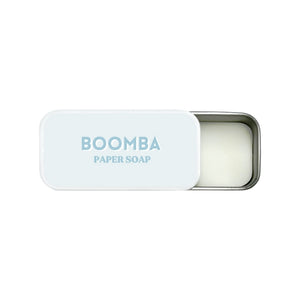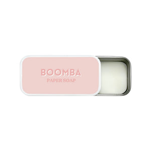 Praktisch: Die BOOMBA Papierseife wird in einer eleganten, kompakten Dose geliefert, die sich perfekt für unterwegs eignet. Damit deine BOOMBA-Produkte haften und immer frisch riechen – sogar unterwegs.