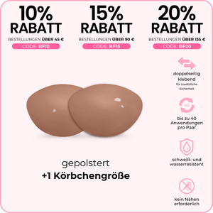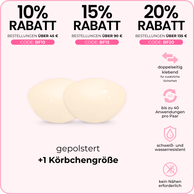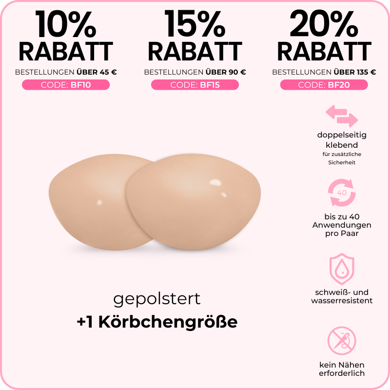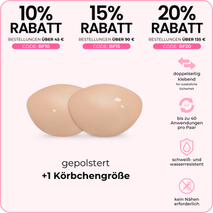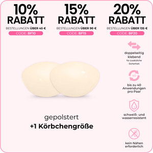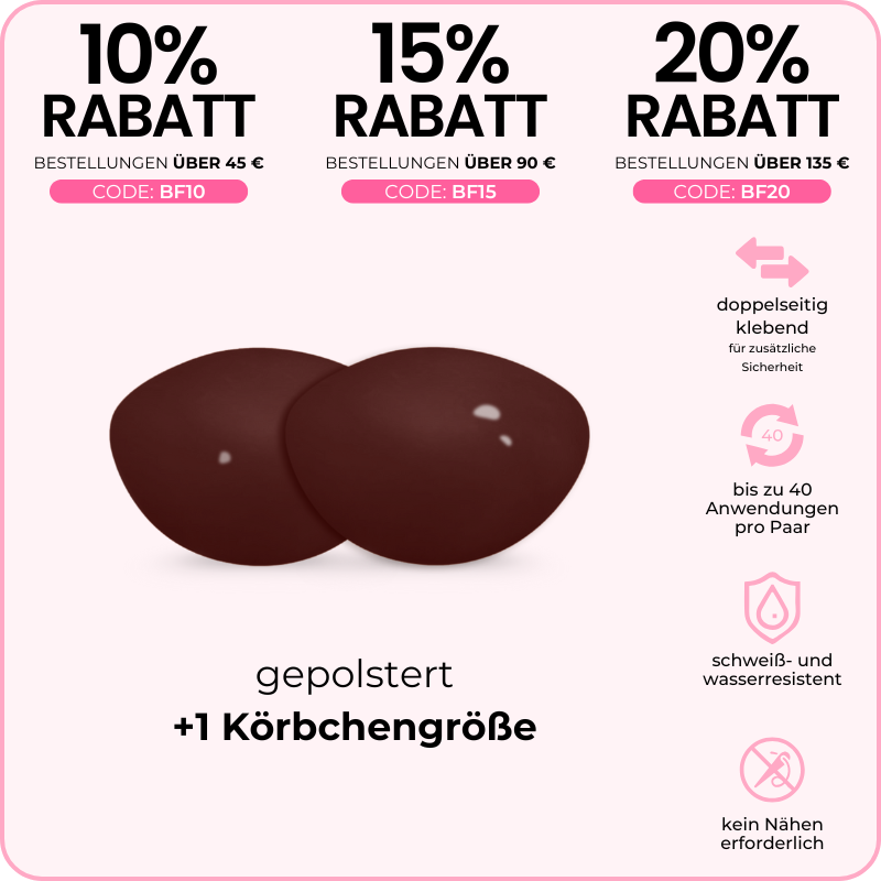 - verhindert das Verrutschen der Brustwarzen in tief ausgeschnittenen Oberteilen