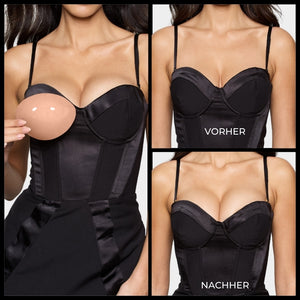 Demi-Boost-Einsätze: die verkürzte Version unserer Ultra Boost Einsätze, liften und fügen 2 Körbchengrößen hinzu, perfekt für Dekolletés mit Sweetheart-Ausschnitt.