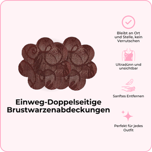 Die ersten Einweg-Doppelseitige Brustwarzenabdeckungen der Welt – eine Seite zum Aufkleben auf dein Kleidungsstück und die andere auf deine Haut. Hält die Kleidung an ihrem Platz und bleibt unter deiner Kleidung unsichtbar.