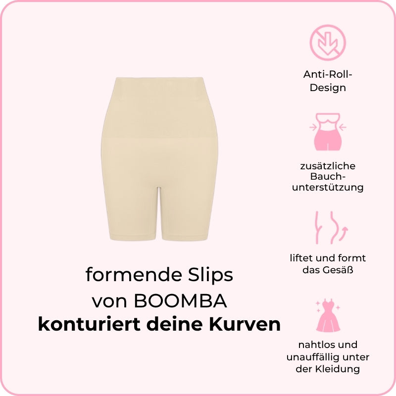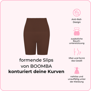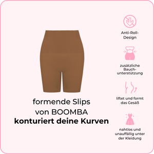 Die Shaper von BOOMBA schmiegen sich an den richtigen Stellen an – sie wurden entwickelt, um deinen Körper nahtlos zu konturieren, zu liften und zu formen, vom Brunch bis zum Schlafengehen. Unser einzigartiges Anti-Roll-Design sorgt dafür, dass nichts verrutscht oder verrutscht, sondern du den ganzen Tag über Komfort unter deinen Lieblingsoutfits genießt und eine glatte Silhouette erhältst.
