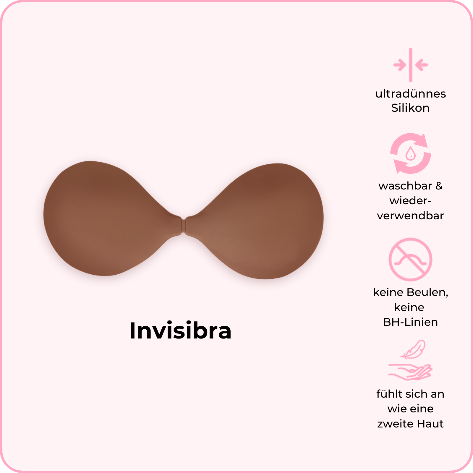 Der dünnste Klebe-BH der Welt – ein absolutes Must-have für jeden Kleiderschrank! Schluss mit störenden Bügeln, Trägern, Abdrücken und Unebenheiten. Sag Hallo zu nahtloser Abdeckung und unglaublichem Tragekomfort. Unser ultradünner Klebe-BH passt sich deiner Haut perfekt an und bleibt selbst unter den feinsten Stoffen unsichtbar.