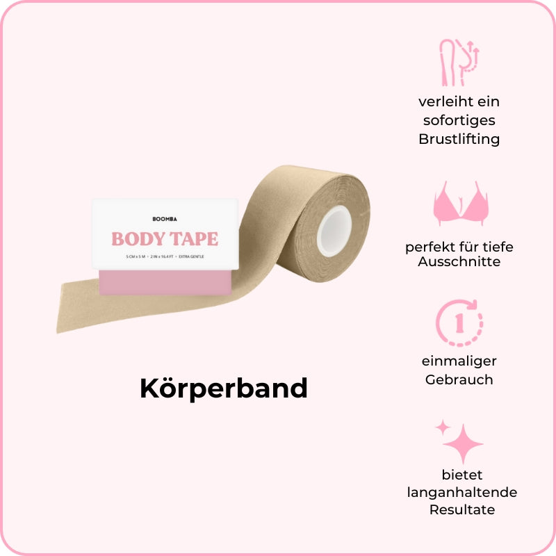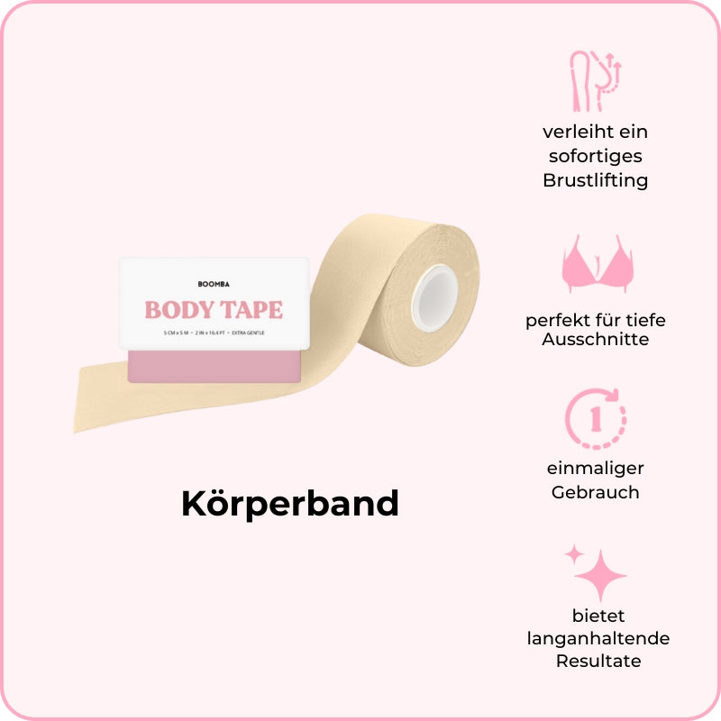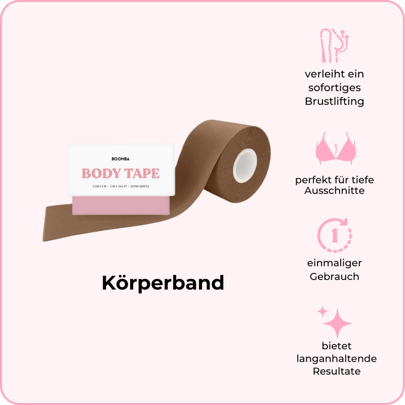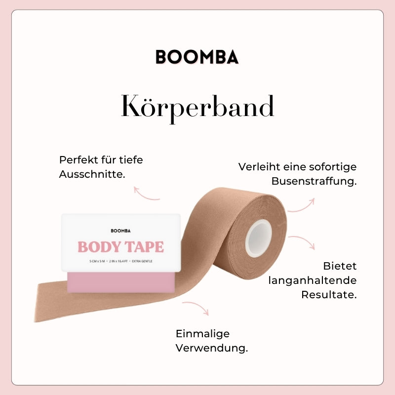 BOOMBAs Körperband kann in verschiedenen Möglichkeiten getragen werden. Es ist so konzipiert, dass es deiner Figur folgt, und ist deshalb sowohl zart als auch beständig, um dauerhafte Ergebnisse von bis zu 12 Stunden zu verschaffen.