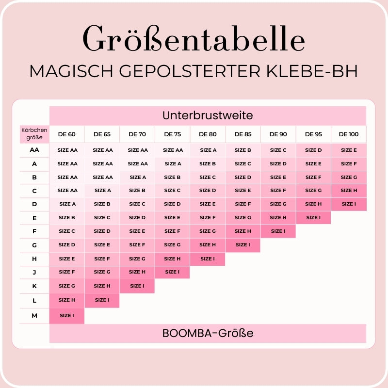 BOOMBA Magisch Gepolsterter Klebe-BH Größentabelle