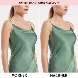 Demi-Boost-Einsätze: die verkürzte Version unserer Ultra Boost Einsätze, liften und fügen 2 Körbchengrößen hinzu, perfekt für Dekolletés mit Sweetheart-Ausschnitt.