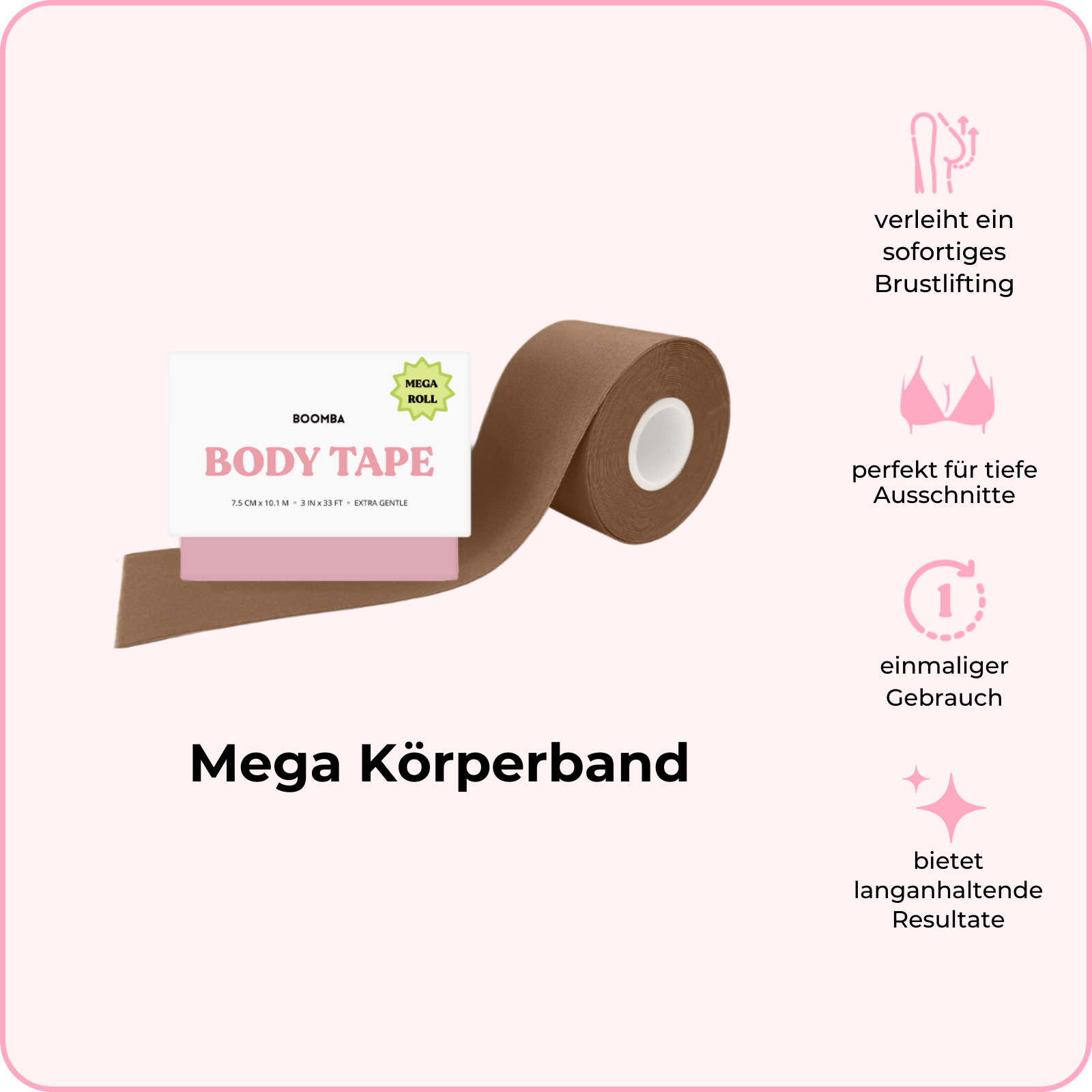 Aufgrund der beliebten Nachfrage: jetzt verfügbar in userer MEGA-Größe! Unser MEGA Tape ist 50 % breiter UND hat eine doppelte Länge im Vergleich zu unseren regulären Größen!