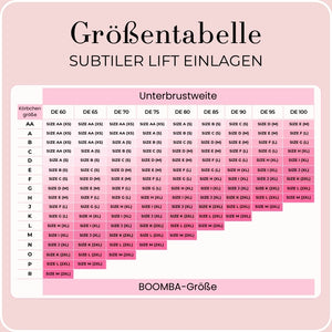Wenn deine Größe größer als 75N ist, sind unsere unsichtbaren Lift-Einlagen (leicht gepolstert) in Größen bis 75T erhältlich.