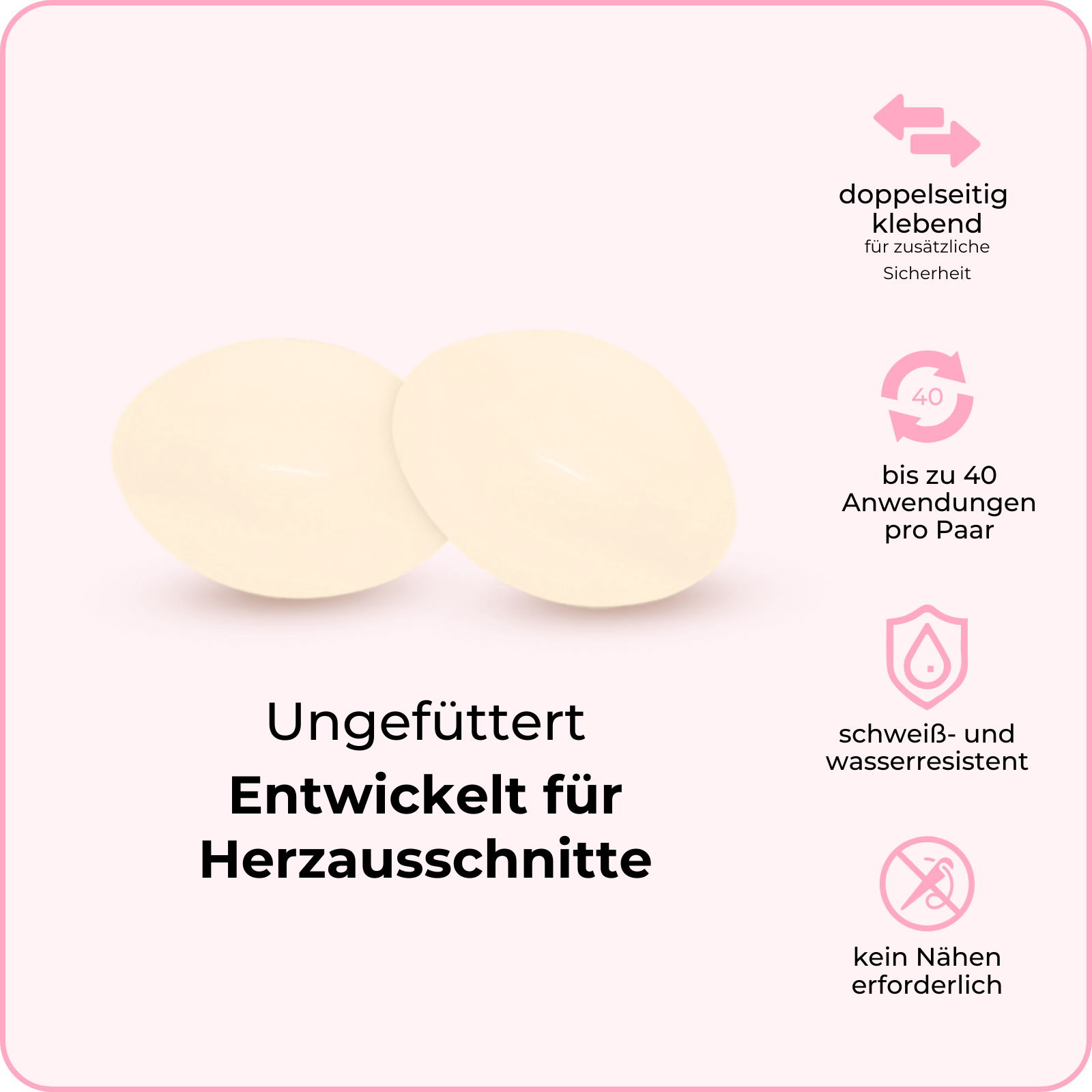 Diese leicht gepolsterten Einsätze sind spezifisch so gestaltet, dass sie einen subtilen Lift bieten, während sie gleichzeitig gegen peinliche Problemchen sicher sind. Perfekt für Hochzeitskleider mit durchsichtigen Korsetts.