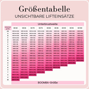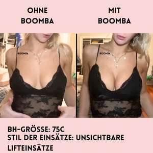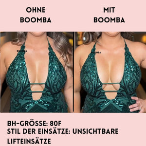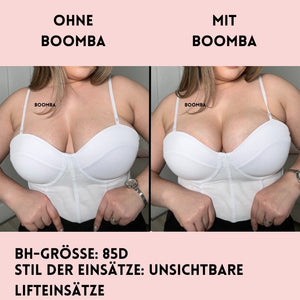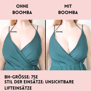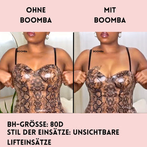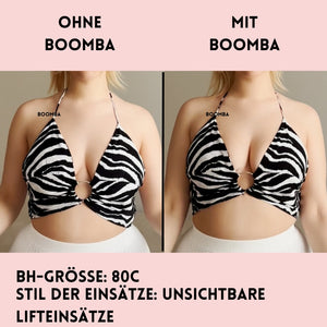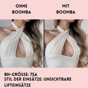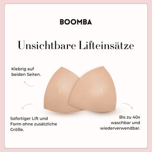 Im Gegensatz zu einem Klebe-BH, der durch das Klebeband gehalten wird, werden die BOOMBA-Einsätze von der Kleidung gehalten. Es ist wichtig, dass du enge, anliegende Oberteile trägst.