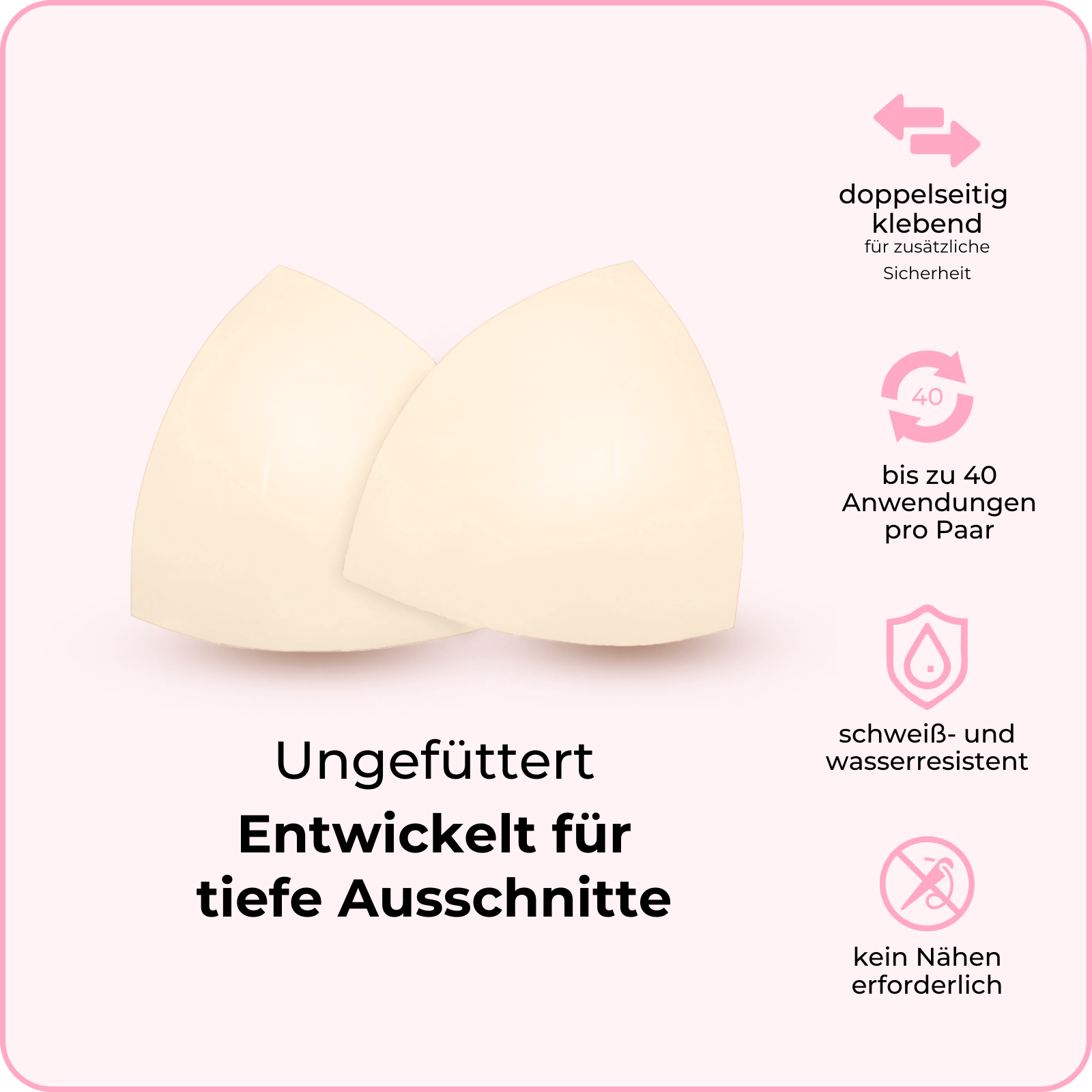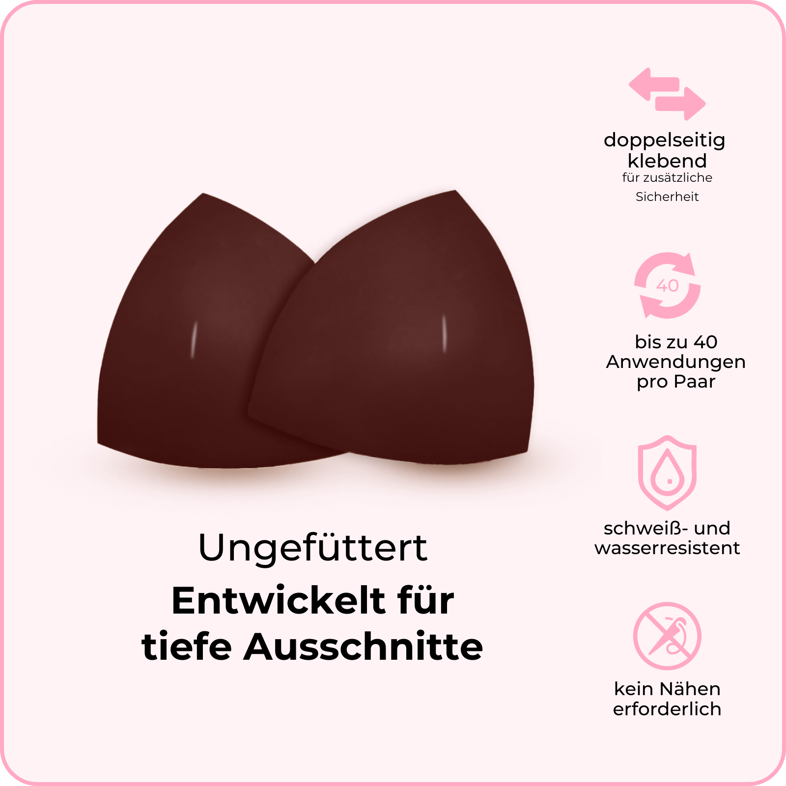 Unsichtbare Lifteinsätze: leicht gepolstert, liften und formen, ohne die Größe bei tief ausgeschnittenen Oberteilen und Triangel-Bikinis zu betonen.