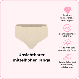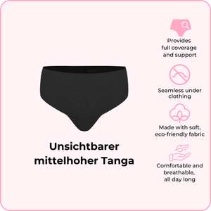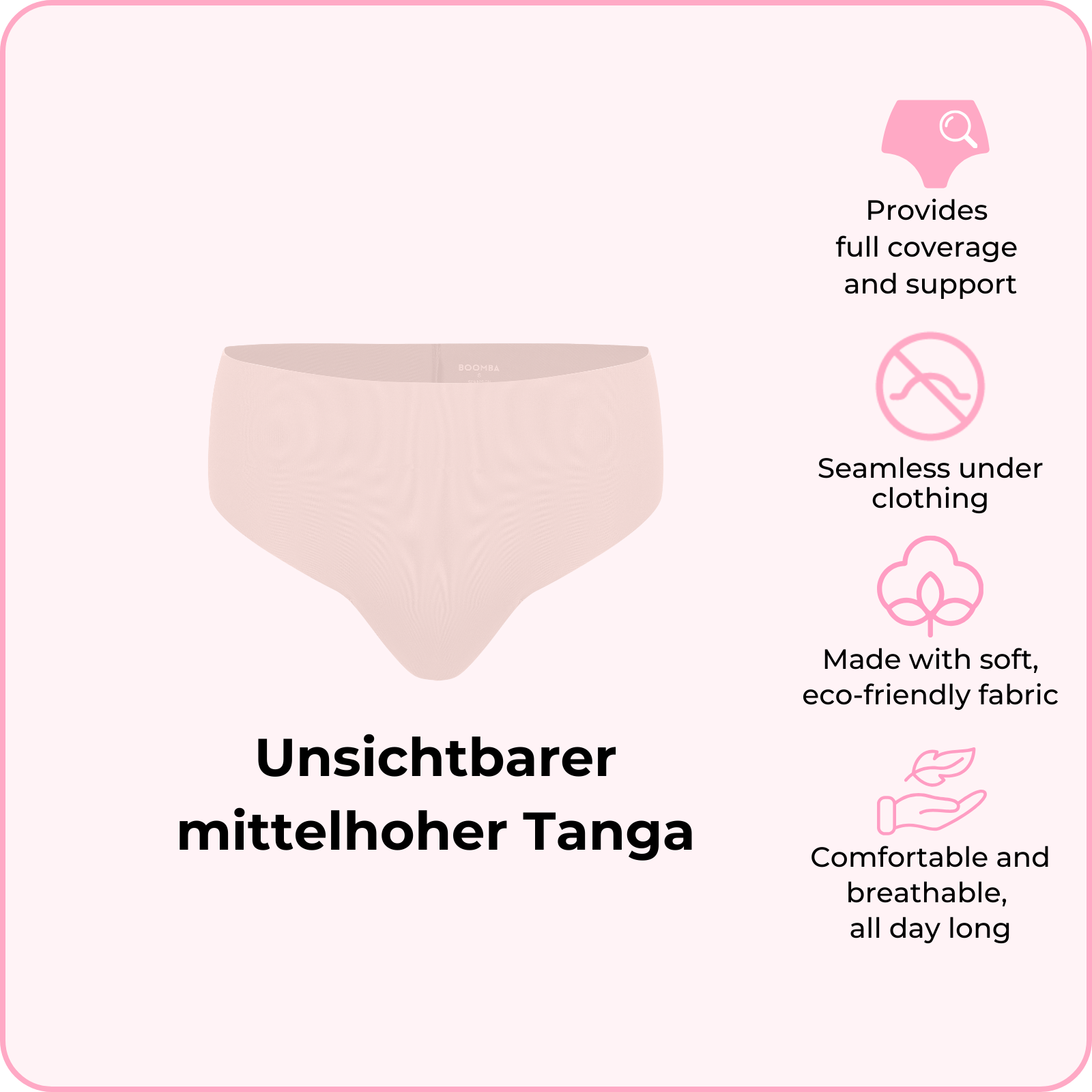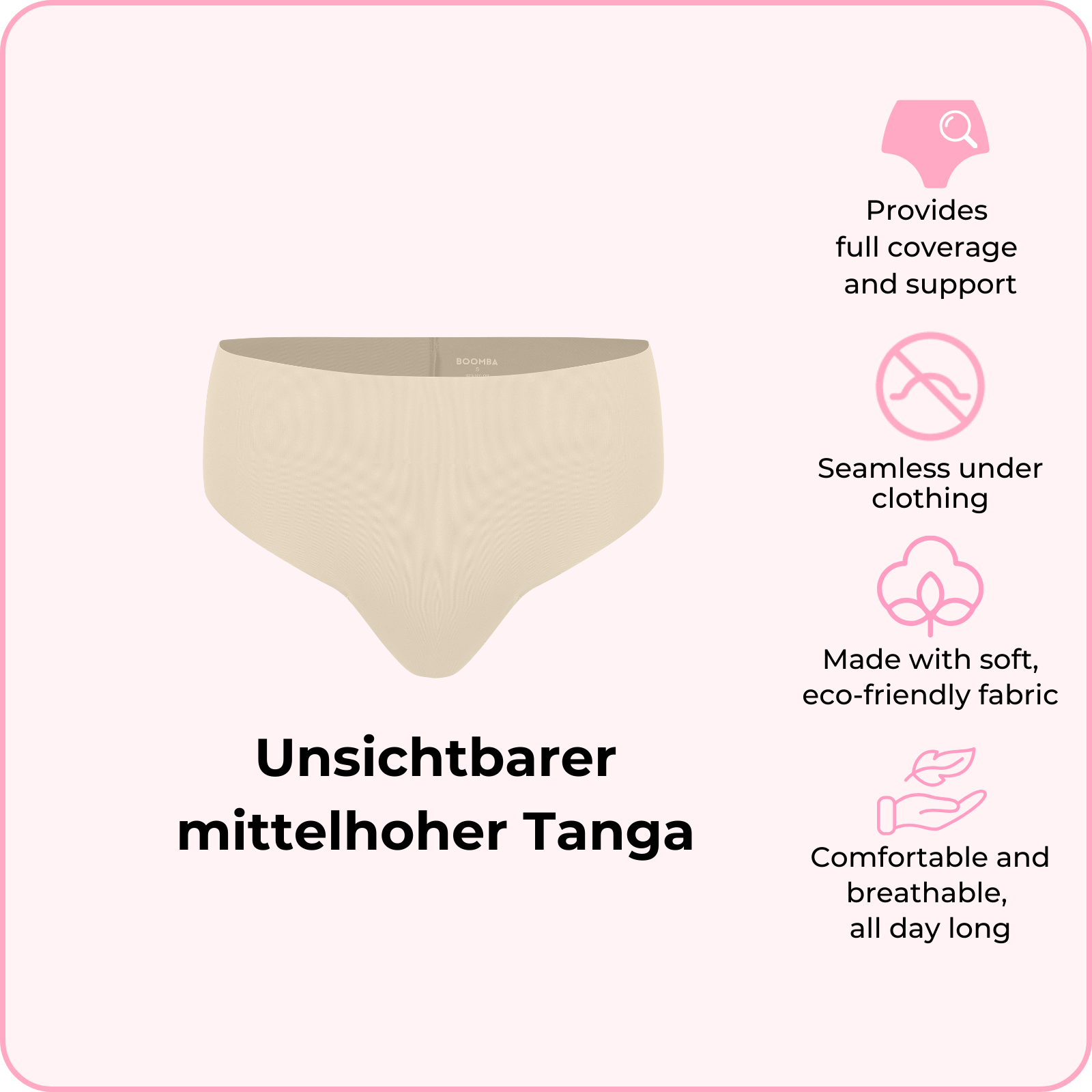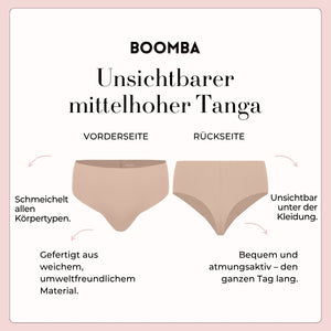 Entdecke den BOOMBA Unsichtbarer mittelhoher Tanga – wie eine zweite Haut, nur viel stylischer! Aus ultraweichem, nahtlosem Material gefertigt, bietet er dir den ganzen Tag Komfort und bleibt unsichtbar unter der Kleidung. Der Mid-Rise-Schnitt vereint die perfekte Mischung aus Abdeckung und Stil, ideal für jeden Tag.
